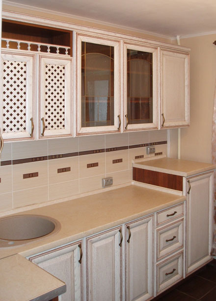 Galla кухни / Каталог / Кухонные гарнитуры / Кухня «GALLA-Ориенталь» с патинированными фасадами из масива